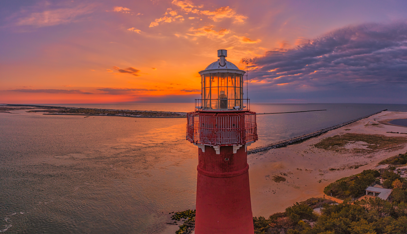 Aerial views of Barnegat Light, NJ, USA, taken with a DJI Mavic drone. Sunrise.taken with a Mavic 2 Pro drone.