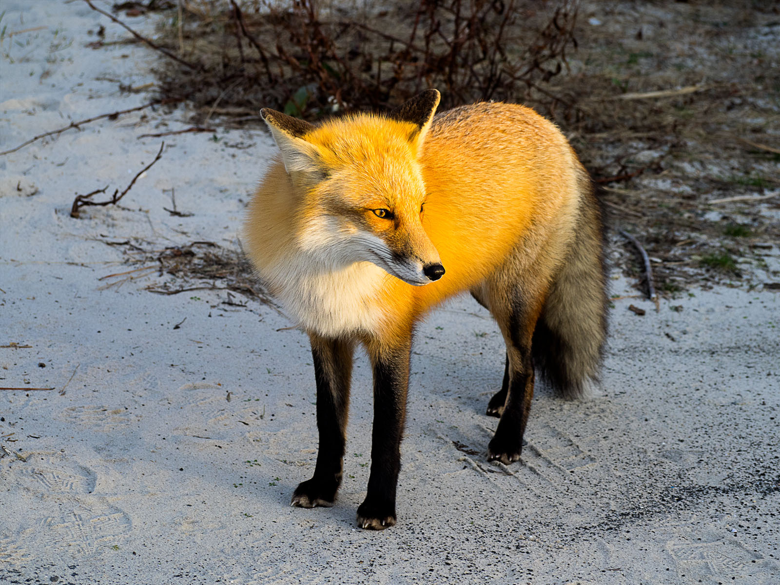 A red fox, Vulpes vulpes, at Island Beach State Park in New Jersey, USA.