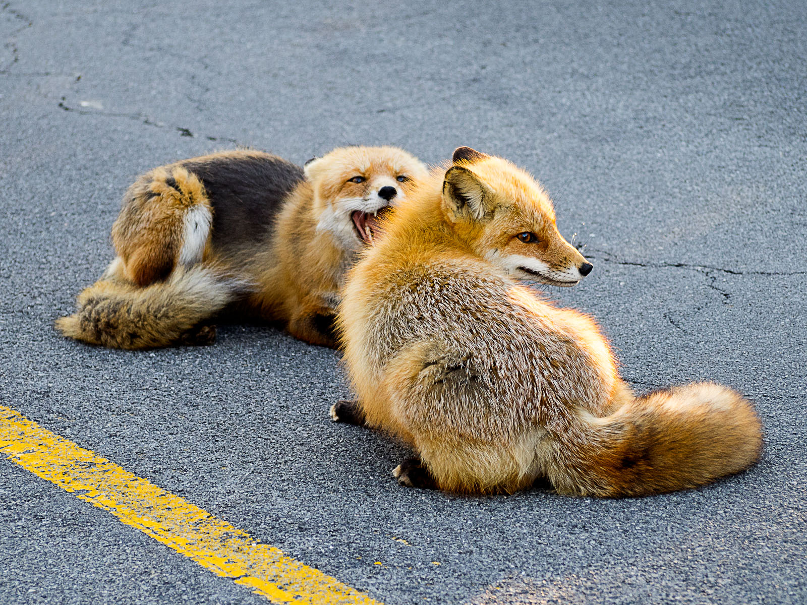 Two red foxes, Vulpes vulpes, fight at Island Beach State Park in New Jersey, USA.
