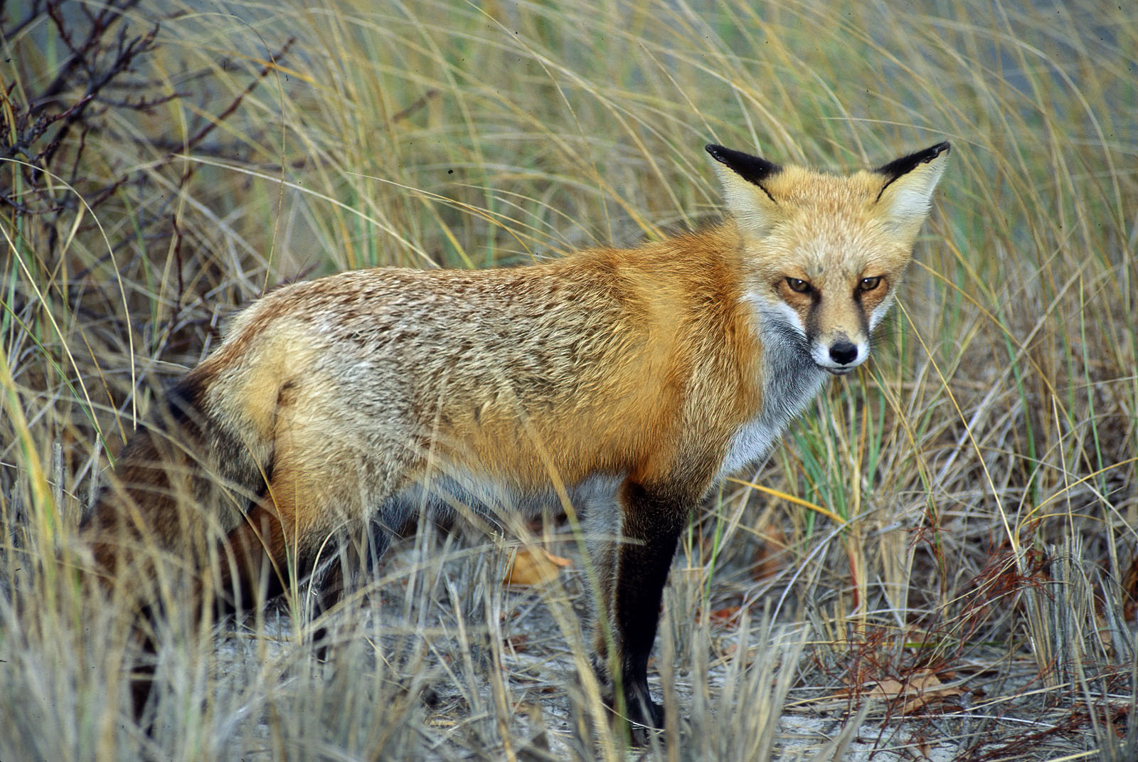 A red fox, Vulpes vulpes, photographed on Island Beach State Park in New Jersey, USA.