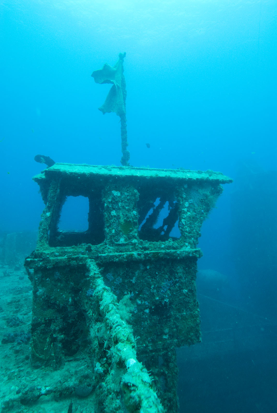 SCUBA diver(s) on the USS Spiegel Grove, an artificial reef located in the Florida Keys National Marine Sanctuary off Key Largo, Florida, USA. The USS Spiegel Grove is a Landing Ship Dock (LSD 32), which has been sunk to create an artificial reef in Key Largo.
