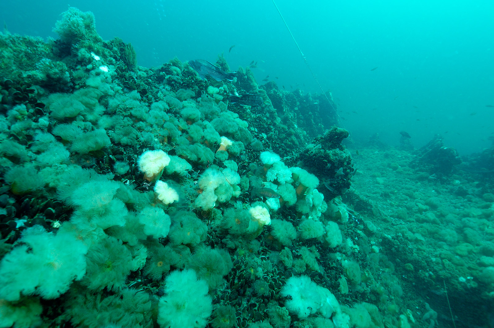 The steel schooner also known as the Dykes and the Five-masted Schooner on the Sea Girt Artificial Reef off Sea Girt, New Jersey, USA. A steel-hulled schooner barge built in 1919 in Baltimore, Maryland. She is 306' long x 35'wide, weighed 2072 tons and carried a crew of 14. The Steel Schooner was sunk in 1983 as an artificial reef in 65' of water. The Steel Schooner was originally built to carry bauxite (aluminum ore) from British Guyana (in South America) for ALCOA. She changed owners many times, and finally finished her long career as an unrigged New York City "sludge barge" in the late 1950's. This artificial reef site lies slightly outside the official boundaries of the Sea Girt Artificial Reef.
