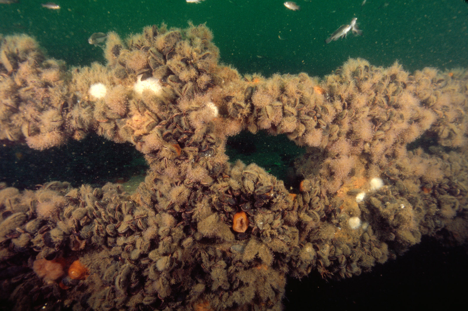 The steel schooner also known as the Dykes and the Five-masted Schooner on the Sea Girt Artificial Reef off Sea Girt, New Jersey, USA. A steel-hulled schooner barge built in 1919 in Baltimore, Maryland. She is 306' long x 35'wide, weighed 2072 tons and carried a crew of 14. The Steel Schooner was sunk in 1983 as an artificial reef in 65' of water. The Steel Schooner was originally built to carry bauxite (aluminum ore) from British Guyana (in South America) for ALCOA. She changed owners many times, and finally finished her long career as an unrigged New York City "sludge barge" in the late 1950's. This artificial reef site lies slightly outside the official boundaries of the Sea Girt Artificial Reef.