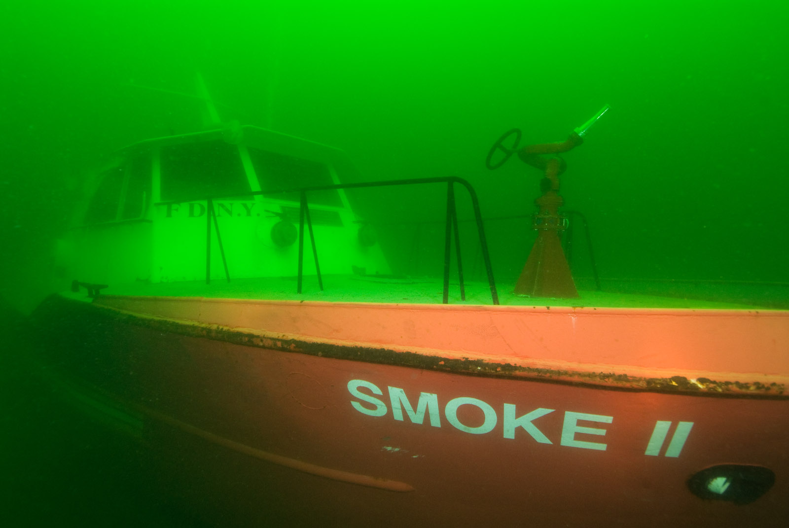 The Smoke II, was a part of the Fire Department of New York for 50 years. The Smoke II was built in New Orleans, Louisiana, in 1958. It was 52 feet in length, pumped 2,000 gallons per minute and was equipped with two monitors (water nozzles). The fireboat was commissioned to be used as the chiefÕs tender for all marine operations and served as a command post. Later it was used as a backup for Marine Unit 6, the Kevin Kane. After September 11, 2001, the Smoke II pumped water to the World Trade Center site following the attacks. The boat also transported Fire Capt. Al Fuentes from the site to a trauma center in New Jersey after he was rescued from the rubble.The Smoke II was sunk on August 8, 2008 on the Sea Girt Artificial Reef off New Jersey and is dedicated as a memorial to Ed Bogaert, a retired policeman and charter dive boat Captain. The site will be called the Ed Bogaert Memorial Reef.
