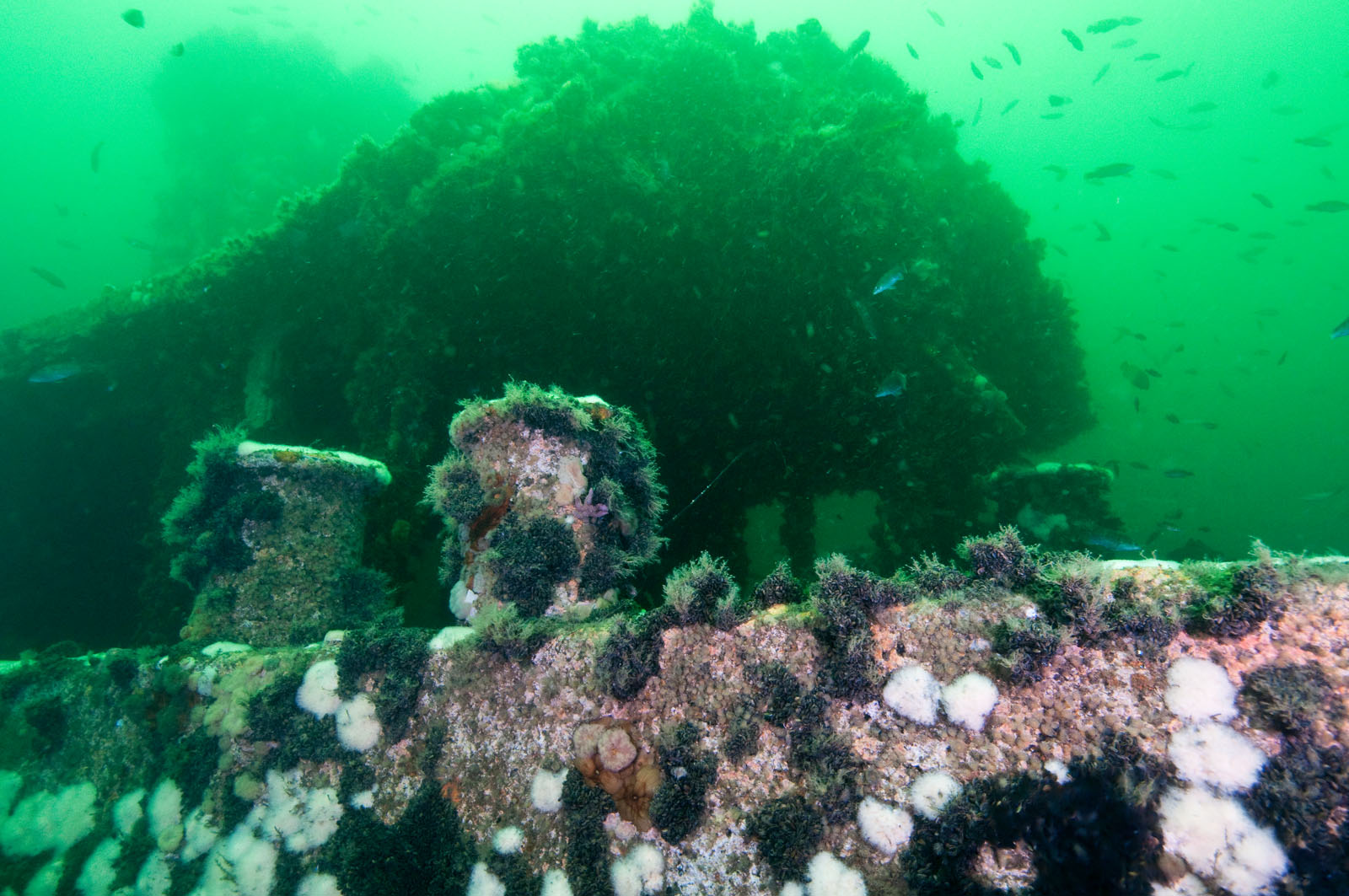 Two single bits at the rear port quarter on the tugboat G. A. Venturo on the Sea Girt Artificial Reef off Sea Girt, New Jersey, USA. The tugboat was a US Navy tug that was sunk on Thursday, October 17, 1996. She was sponsored by Sean Maubray & FCO. The site was later named in memory of Greg Venturo, a local SCUBA diver that died while diving. She lies in 80' of water.