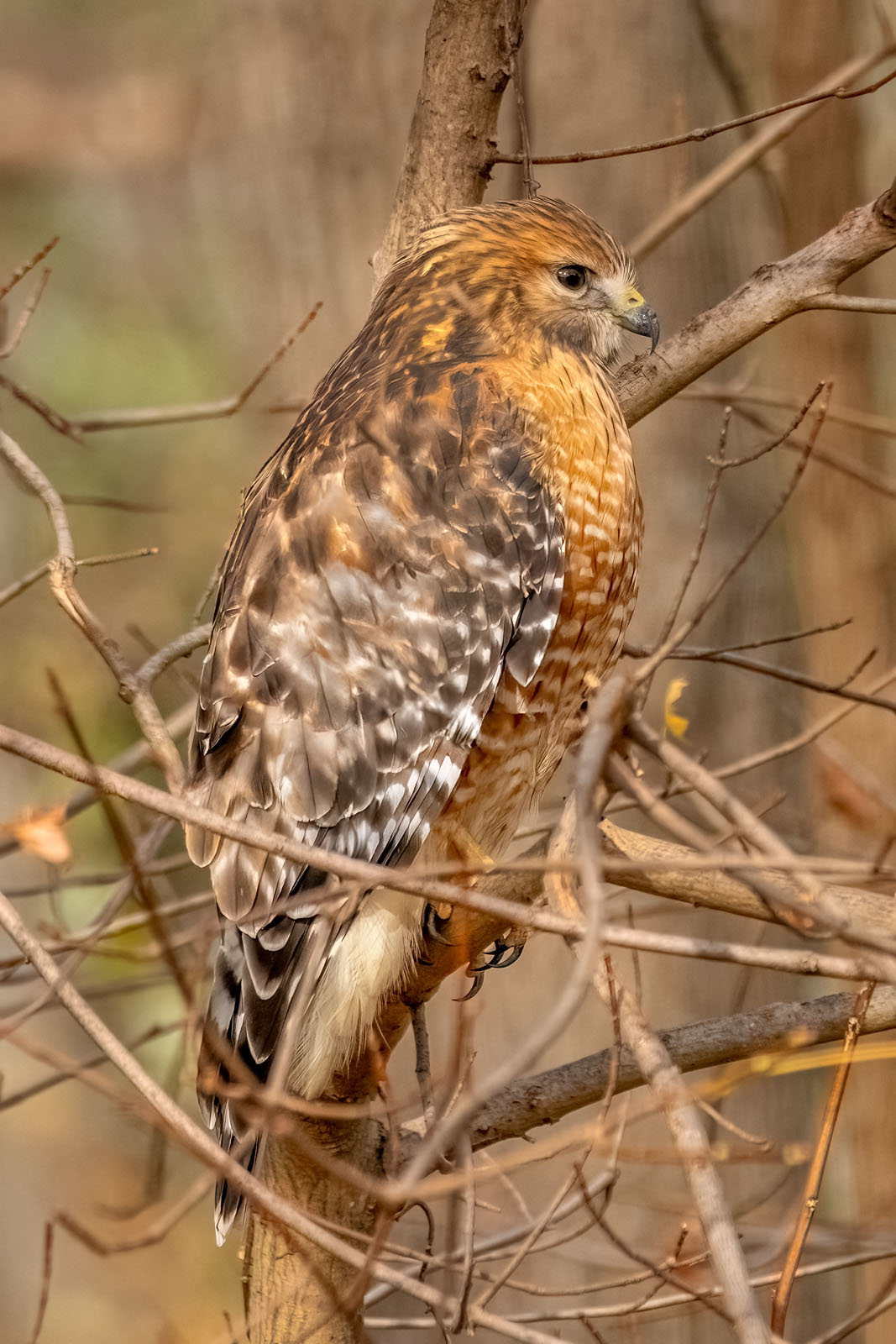A red-shouldered hawk, Buteo linea, photographed in Brick, NJ, USA.