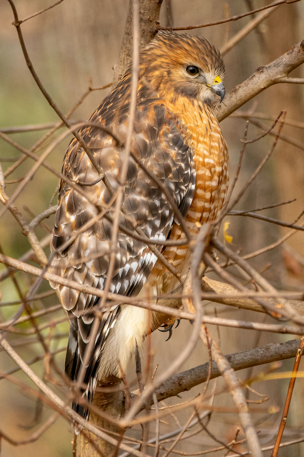 A red-shouldered hawk, Buteo linea, photographed in Brick, NJ, USA.