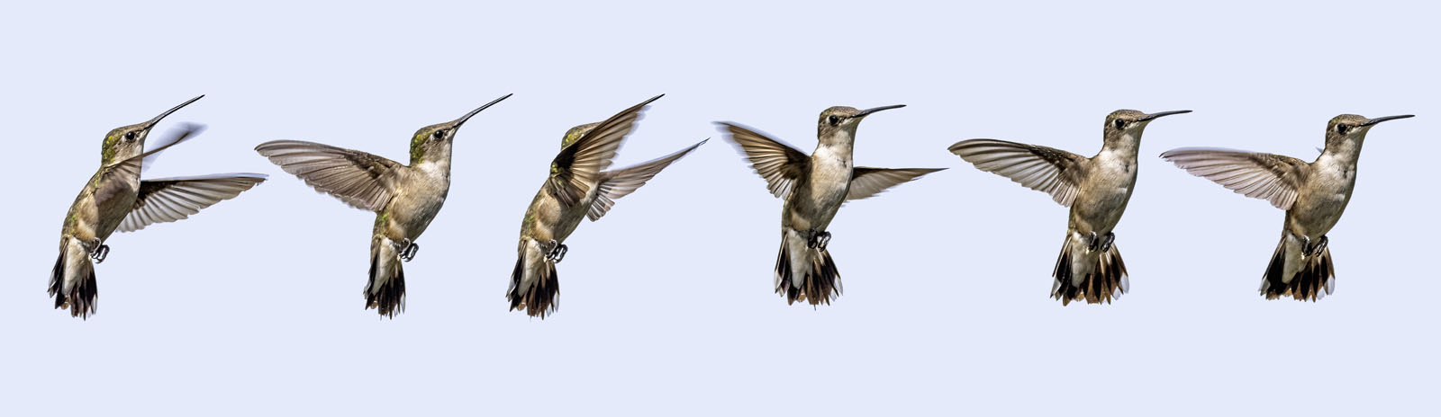 A female ruby-throated hummingbird at a feeder in a backyard in Brick, NJ.