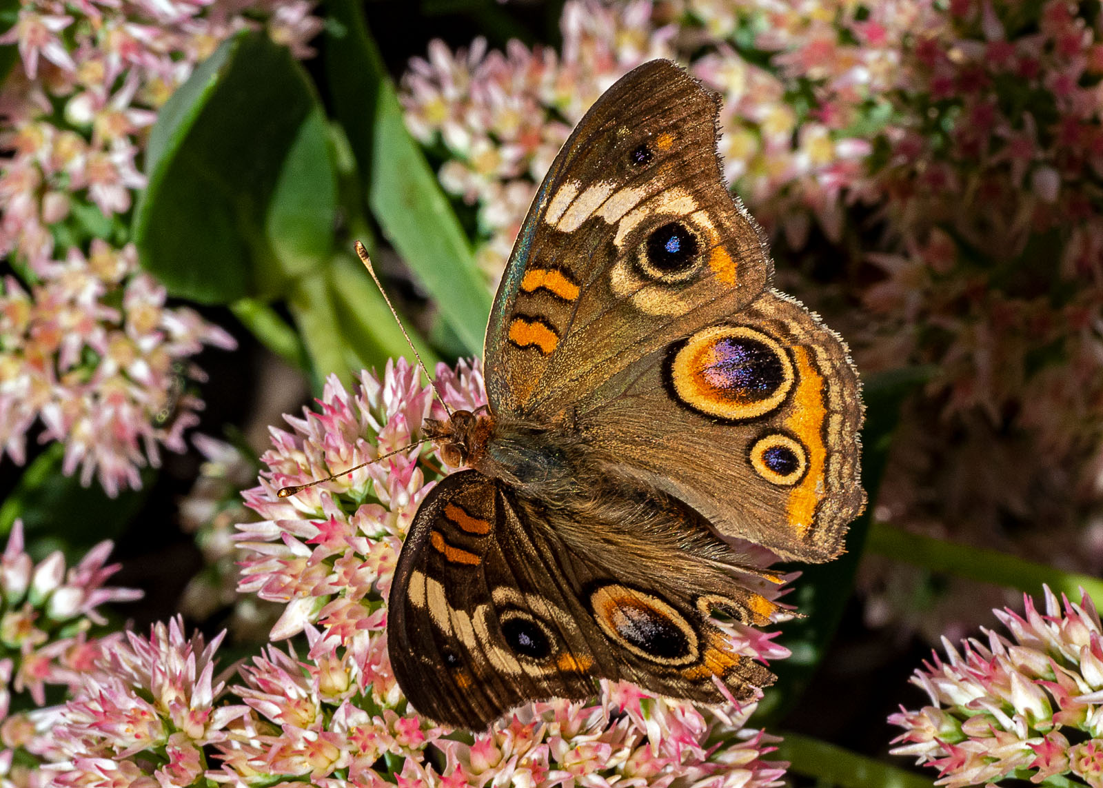 A common buckeye butterfly, Junonia coenia, in a backyard in Brick, NJ, USA.