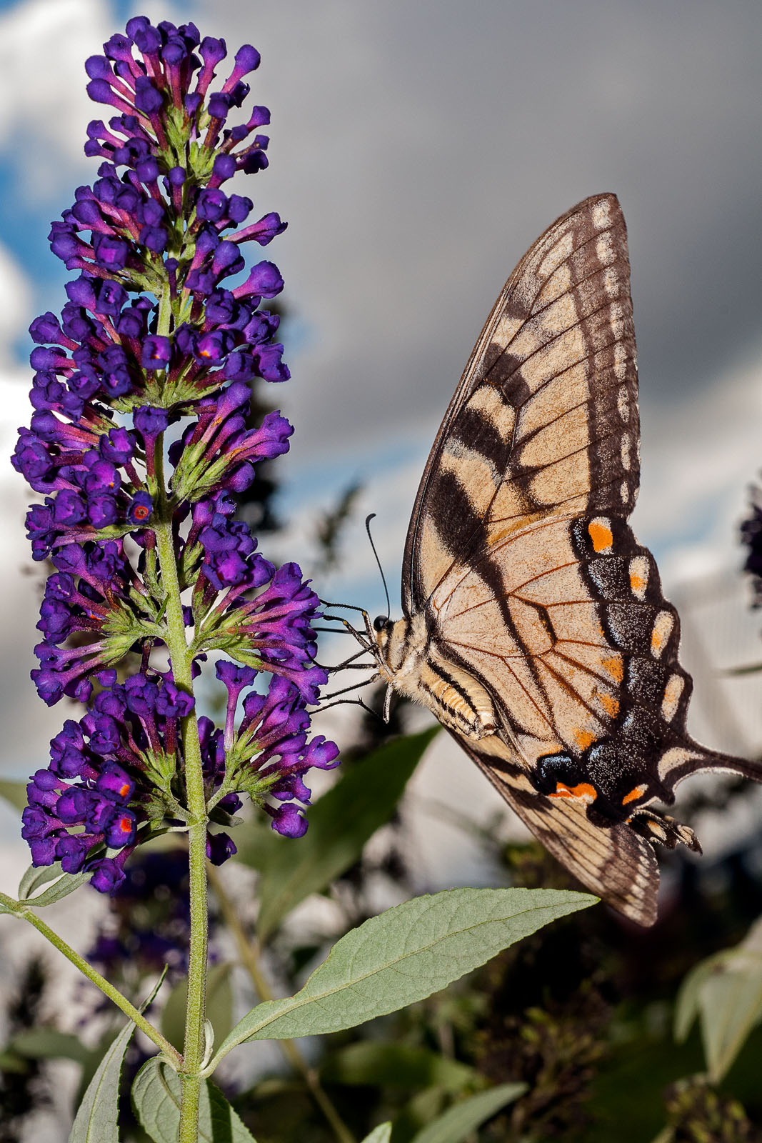 An eastern swallowtail butterfly, Papilio glaucus, on a butterfly bush in Brick, New Jersey, USA.