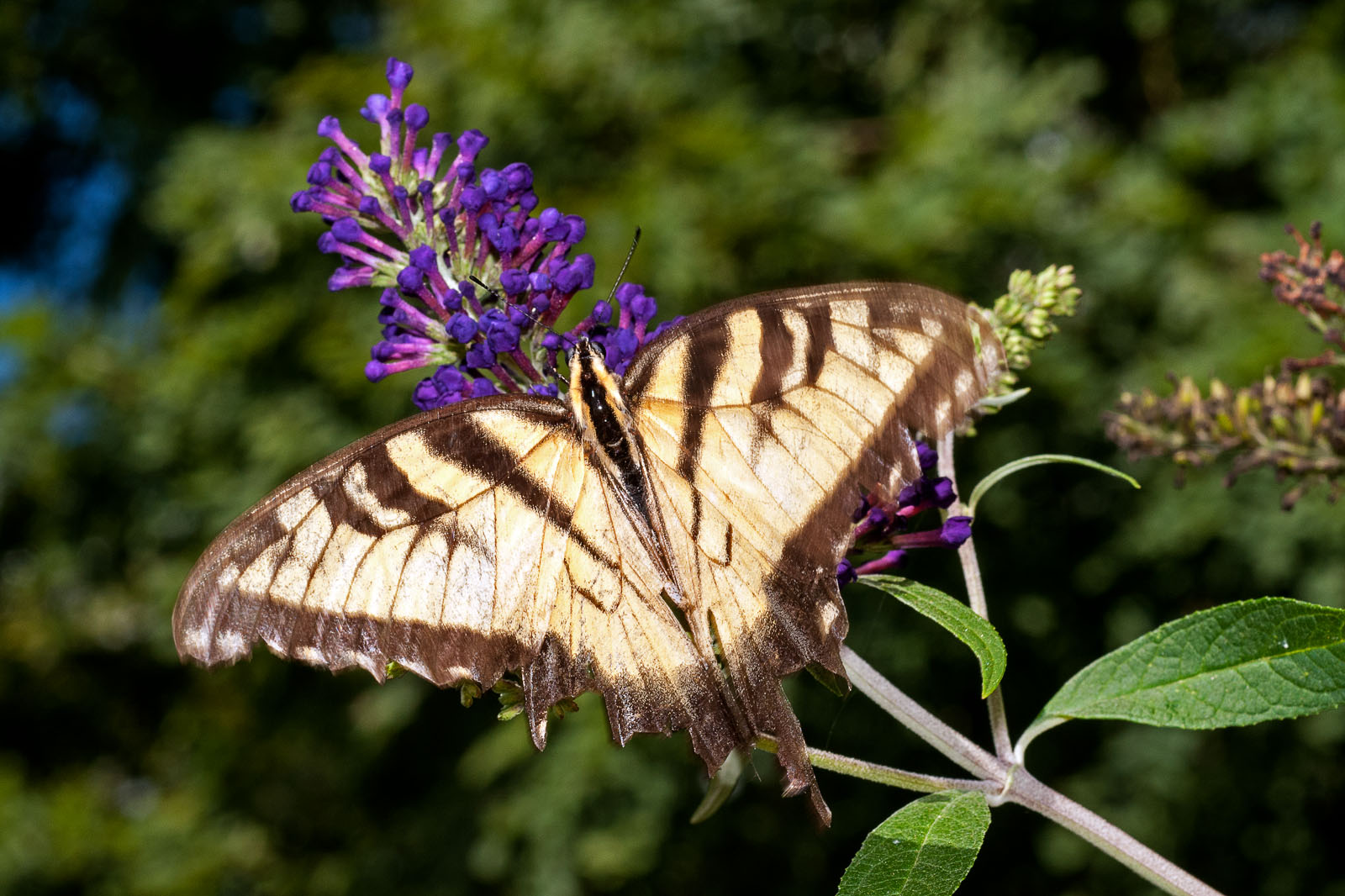 An eastern swallowtail butterfly, Papilio glaucus, on a butterfly bush in Brick, New Jersey, USA.