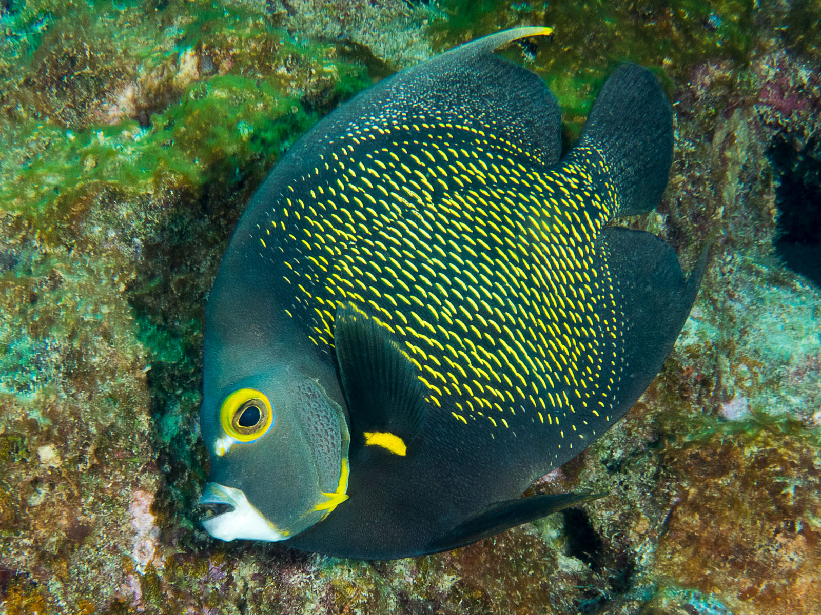 A French angelfish, Pomacanthus paru, in Bonaire, Netherland Antilles.