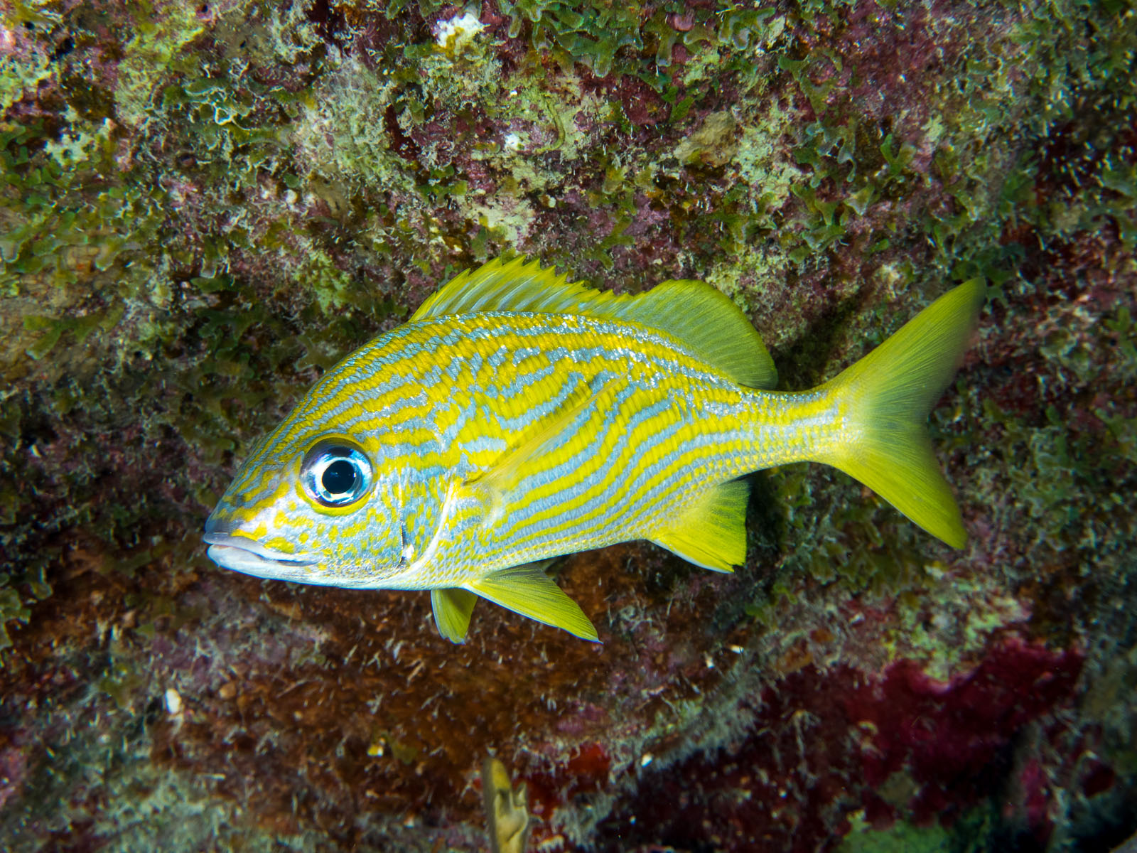 A French grunt, Haemulon flavolineatum, in Bonaire in the Netherland Antilles.