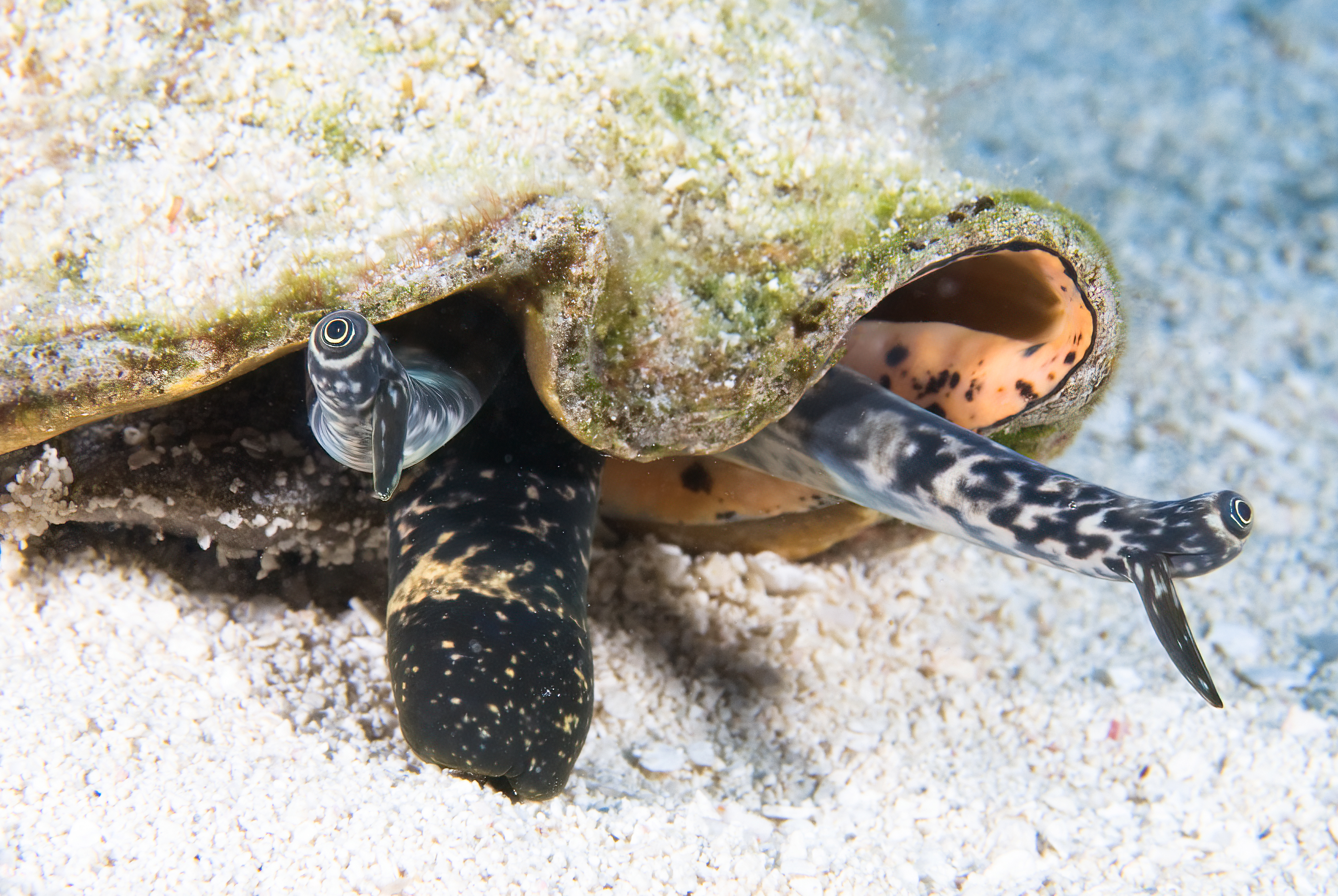 A closeup of a queen conch, Strombus gigas, at Scoto's Reef in the northern Bahamas.