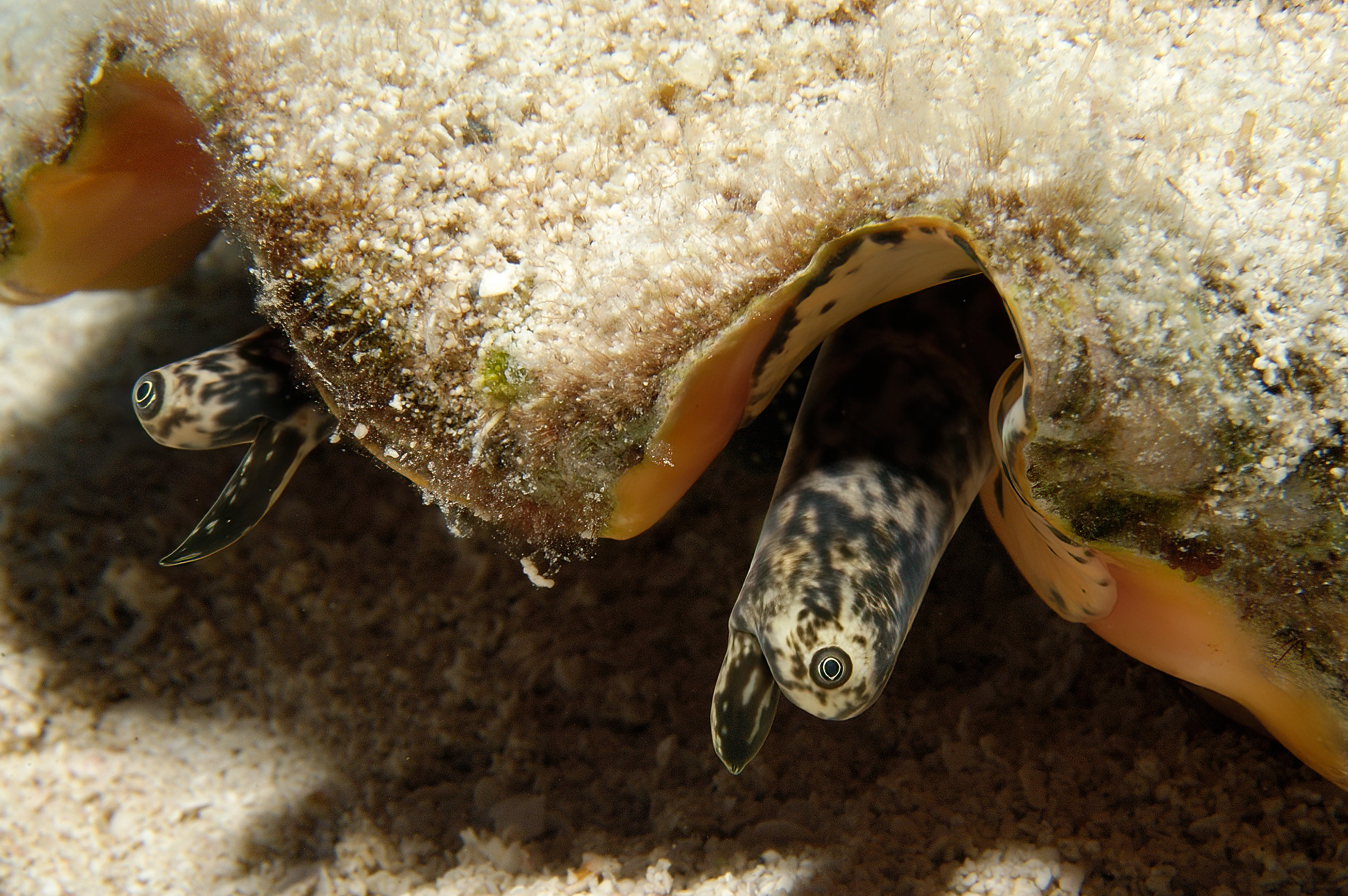 A queen conch, Strombus gigas, on Scoto's Reef in the northwestern Bahamas.
