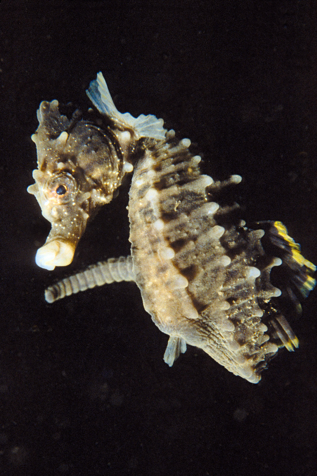 A lined seahorse, Hippocampus erectus, photographed in the Manasquan River near the railroad bridge and Gull Island in Point Pleasant Beach, New Jersey, USA.