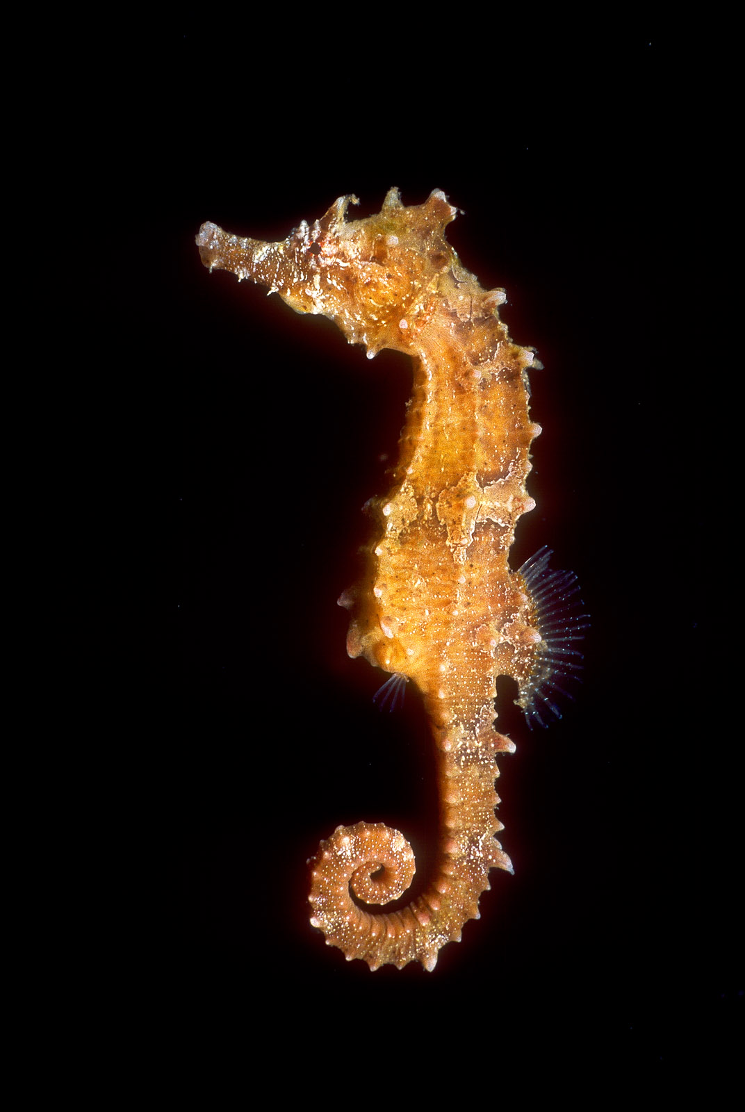 A lined seahorse, Hippocampus erectus, photographed in the waters off New Jersey, USA.