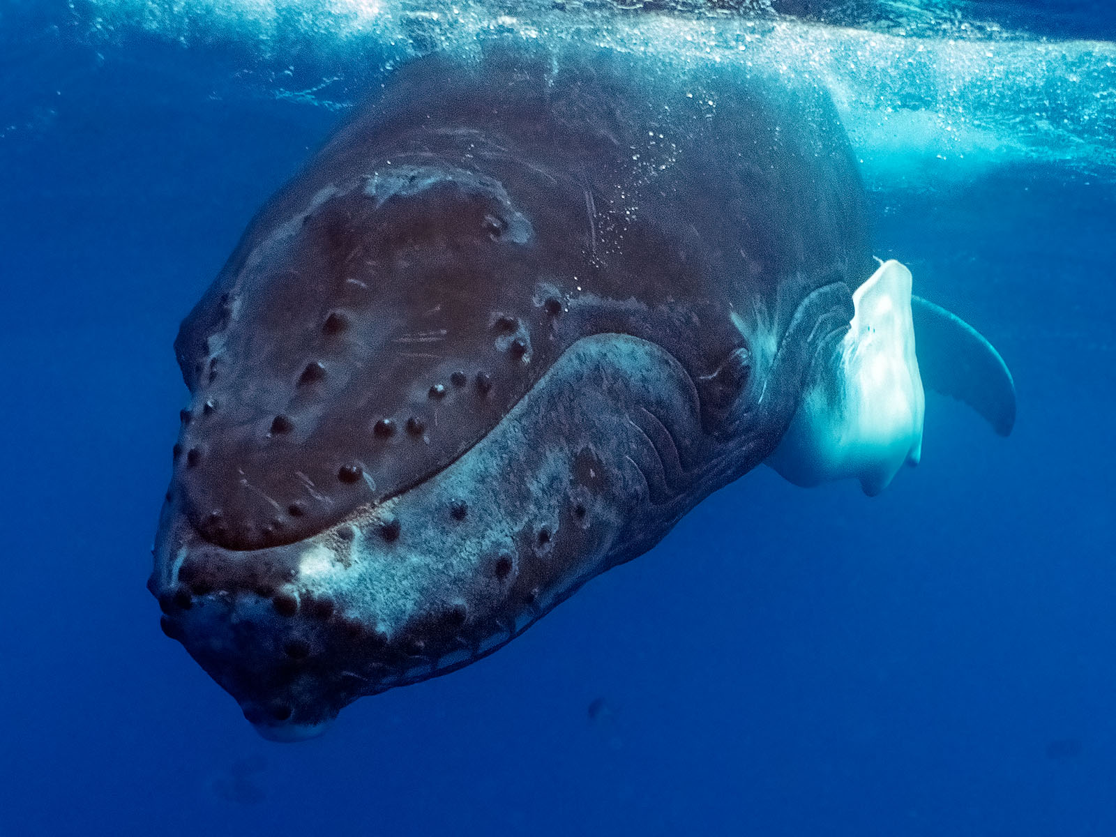 Humback whale, Megaptera novaeangilae, in the waters of the Silver Banks off the coast of the Dominican Republic.