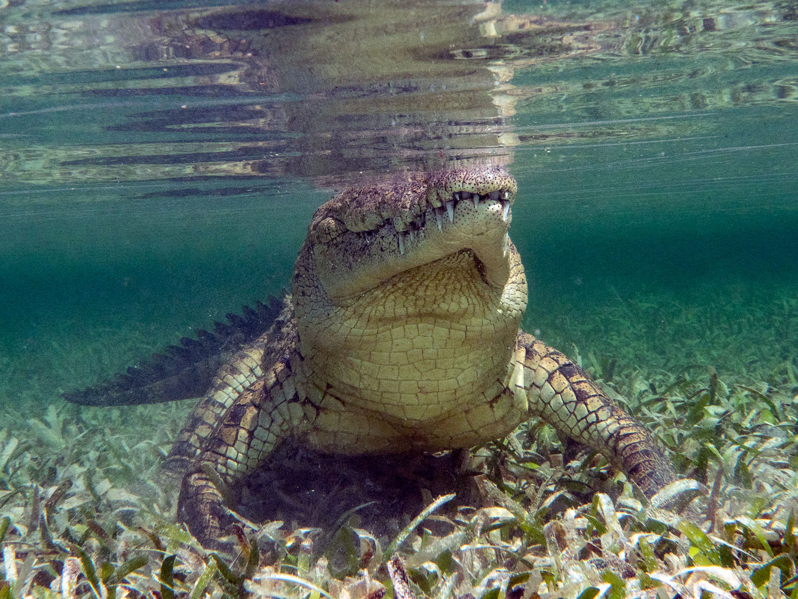 A Cuban crocodile, Crocodylus rhombifer, extremely endangered in the Gardens of the Queen off the coast of Cuba.
