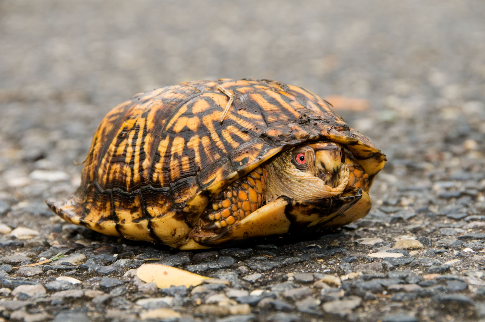An eastern box turtle, Terrapene carolina, in a yard in Brick, New Jersey, USA.