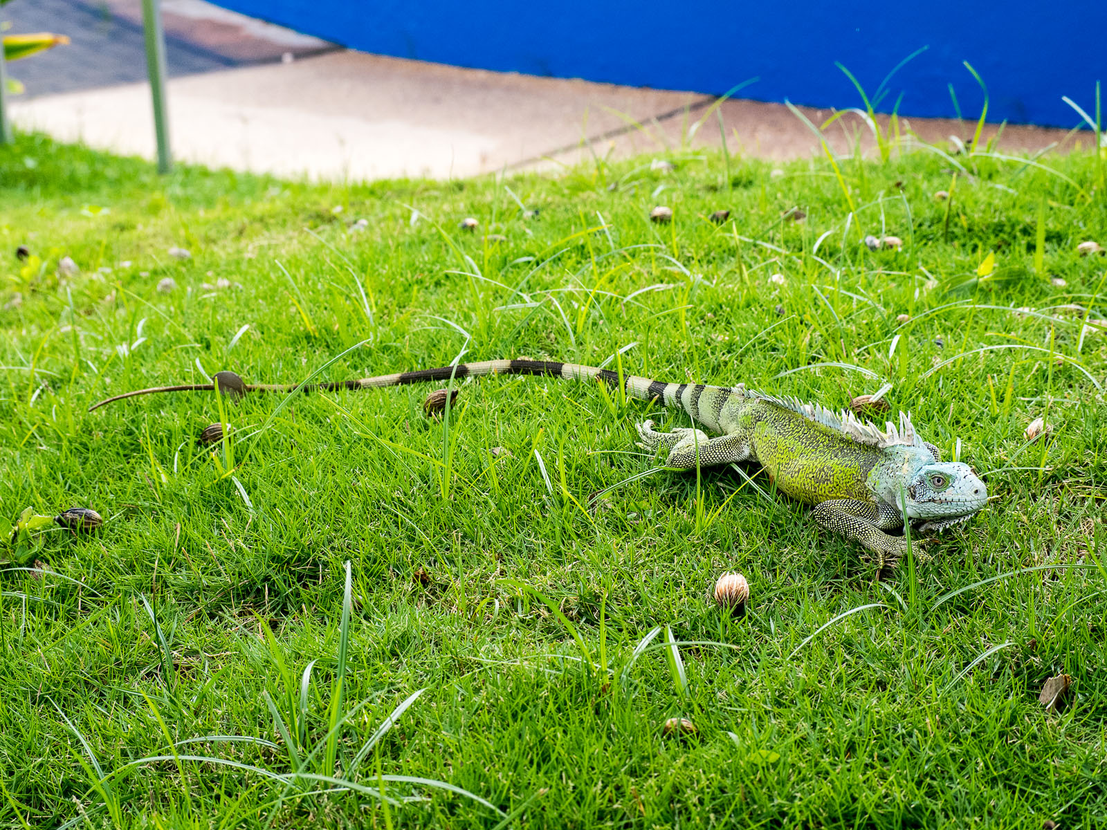 A green iguana on the grounds of the Divi Flamingo Beach Resort and Casino on Bonaire in the Dutch Caribbean.