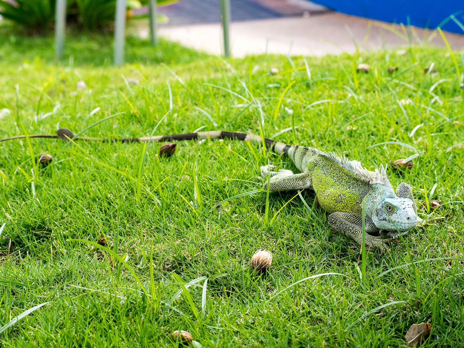 A green iguana on the grounds of the Divi Flamingo Beach Resort and Casino on Bonaire in the Dutch Caribbean.
