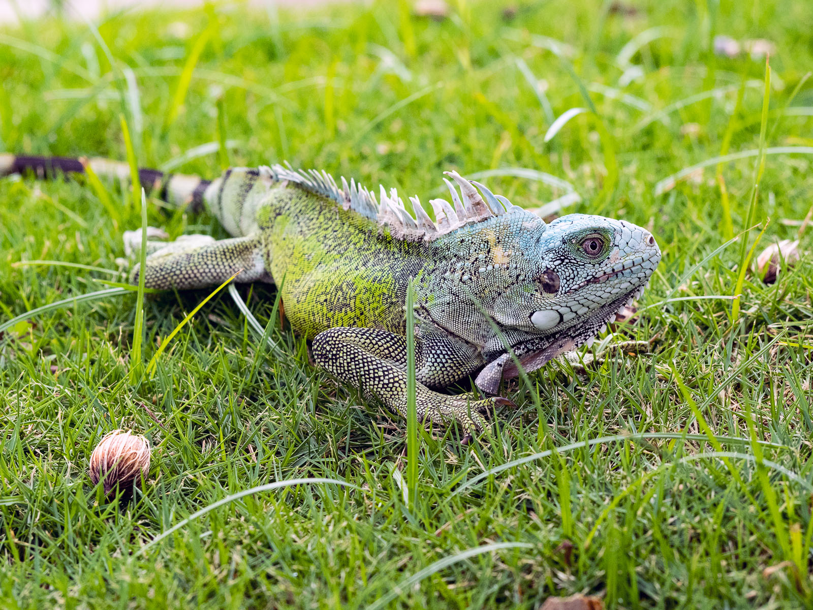 A green iguana on the grounds of the Divi Flamingo Beach Resort and Casino on Bonaire in the Dutch Caribbean.