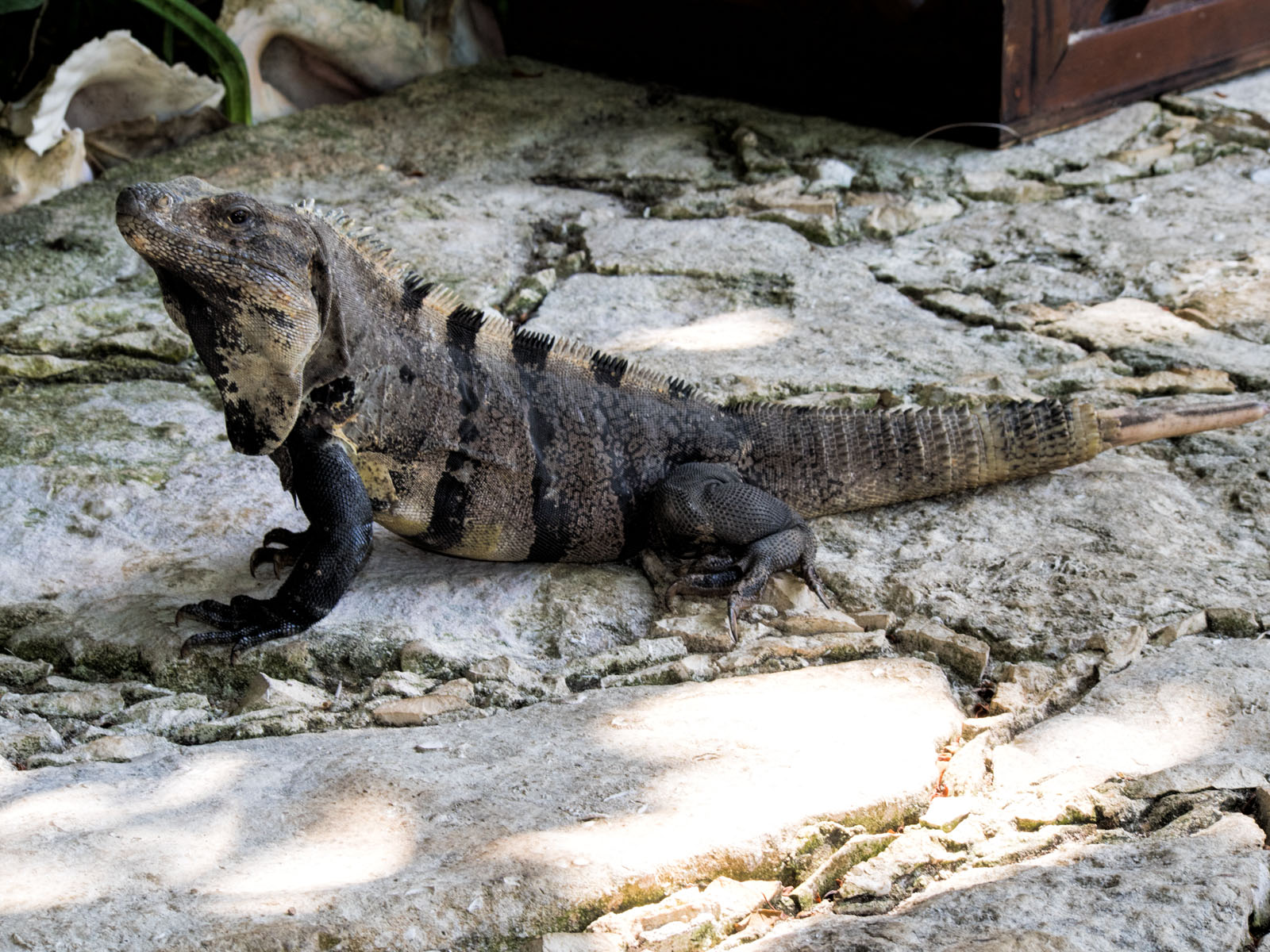 A spiny tailed iguana, Ctenosaura similis, near the pool at the Na Balam Resort on Isla Mujeres, Mexico in the Caribbean Sea.