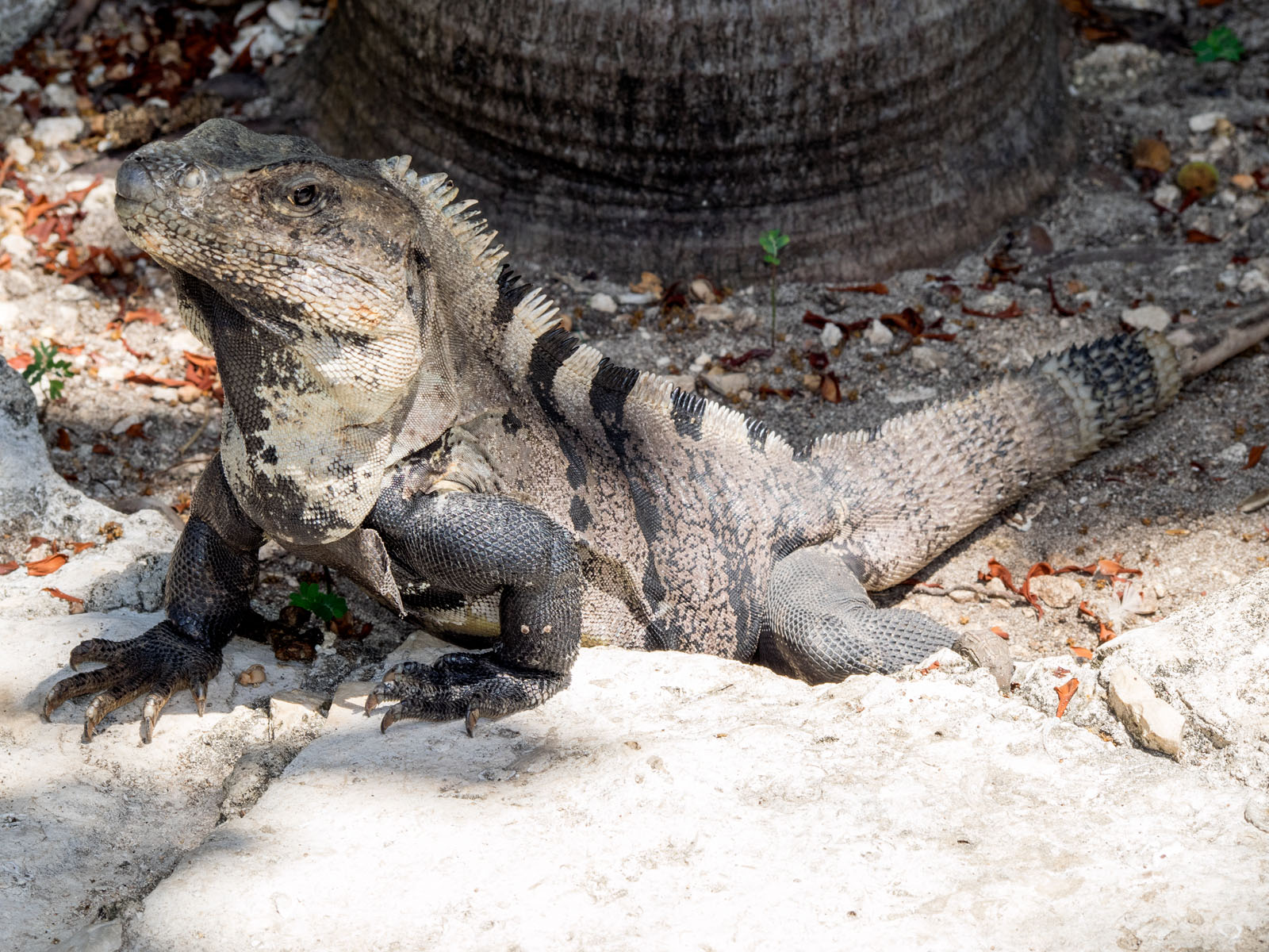A spiny tailed iguana, Ctenosaura similis, near the pool at the Na Balam Resort on Isla Mujeres, Mexico in the Caribbean Sea.