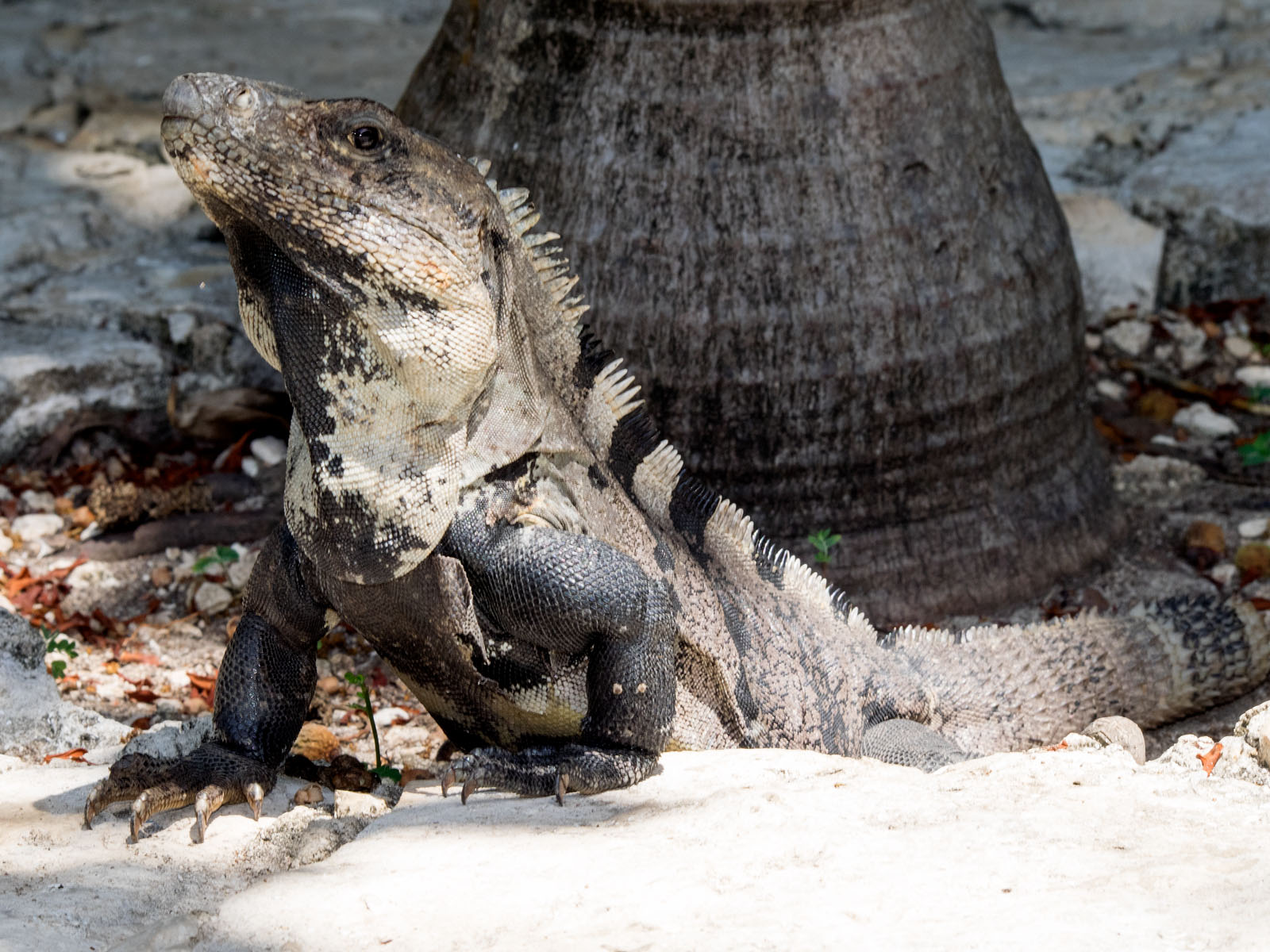 A spiny tailed iguana, Ctenosaura similis, near the pool at the Na Balam Resort on Isla Mujeres, Mexico in the Caribbean Sea.