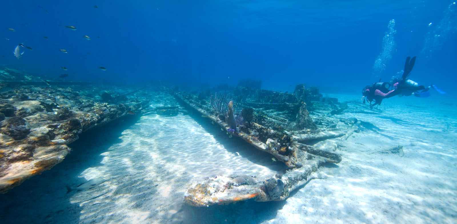 A panoramic photo of the Sugar Wreck north of Grand Bahama Island in the northern Bahamas.