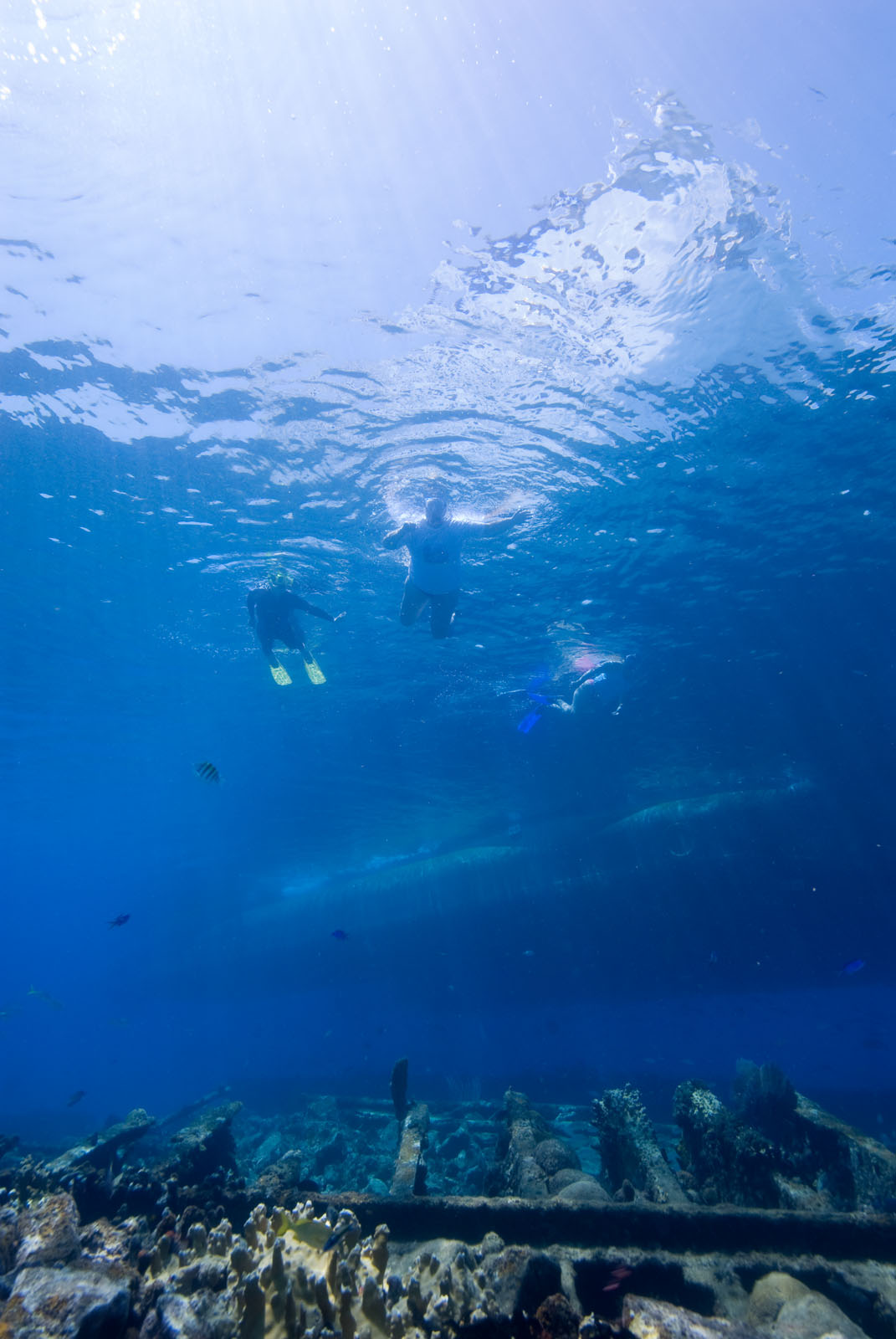 People snorkeling over the Sugar Wreck north of Grand Bahama Island in the northern Bahamas.