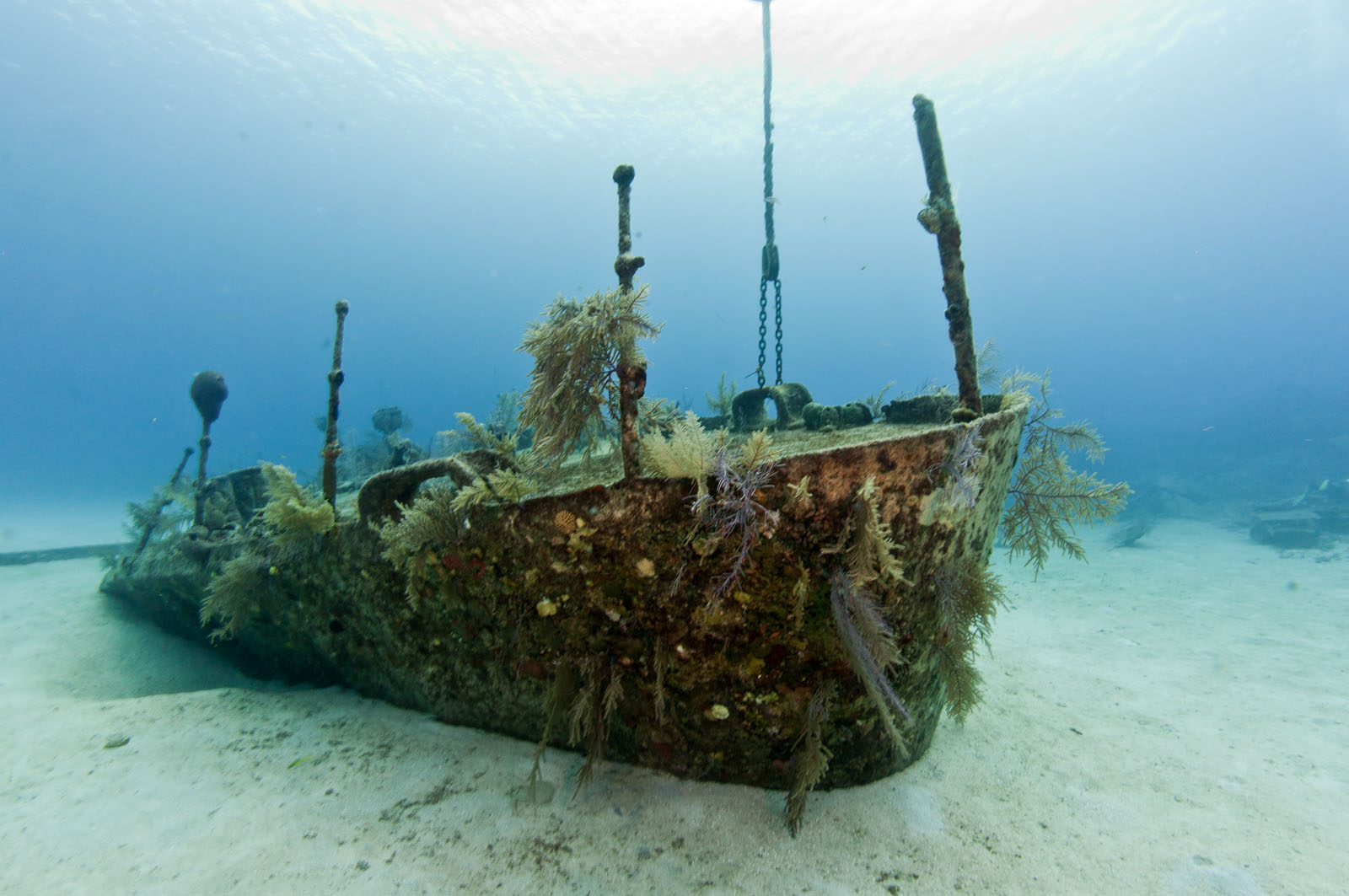 The bow section of the wreck of the Oro Verde, a 184 foot long liberty ship that was scuttled off the west coast of Grand Cayman on May 31, 1980.
