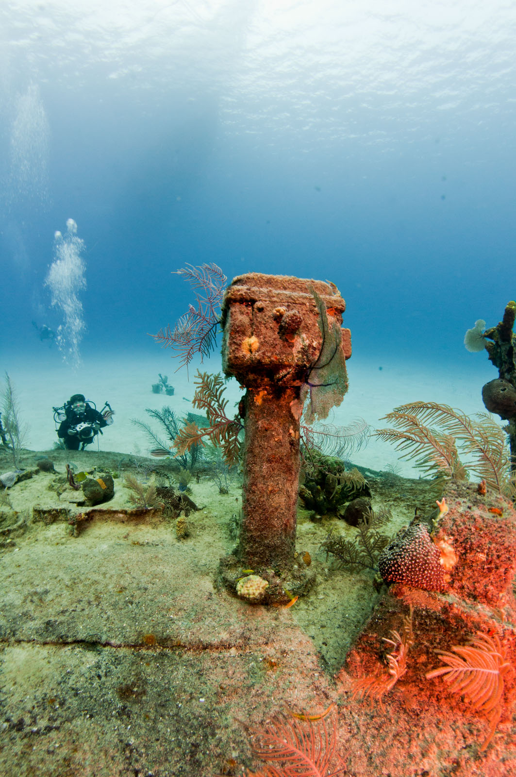 Sponges grown on the bow section of the wreck of the Oro Verde, a 184 foot long liberty ship that was scuttled off the west coast of Grand Cayman on May 31, 1980.