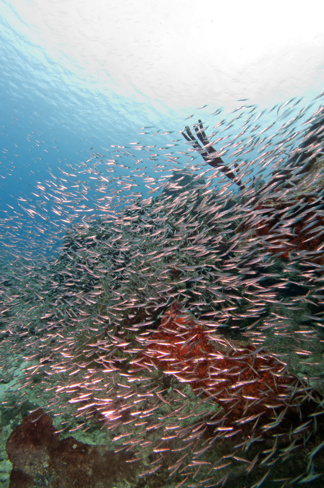 Atlantic silversides, Menidia menidia, on the wreck of the Oro Verde, a 184 foot long liberty ship that was scuttled off the west coast of Grand Cayman on May 31, 1980.