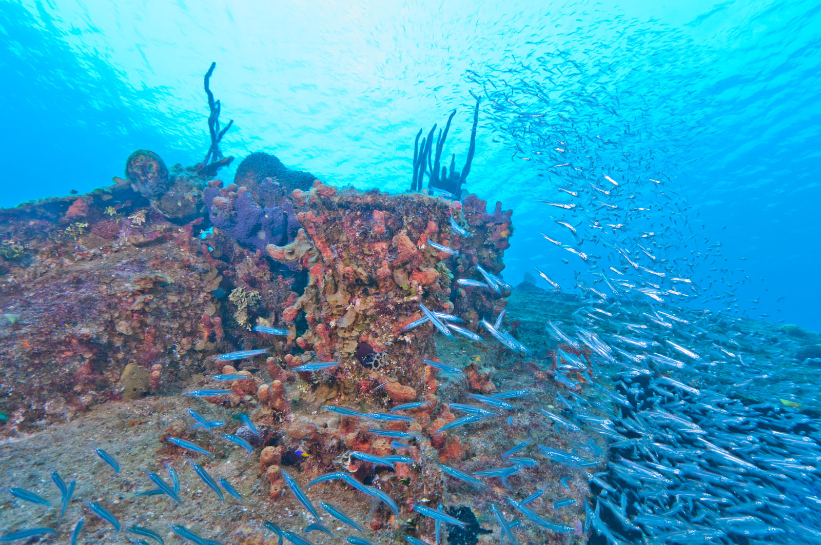 Atlantic silversides, Menidia menidia, on the wreck of the Oro Verde, a 184 foot long liberty ship that was scuttled off the west coast of Grand Cayman on May 31, 1980.
