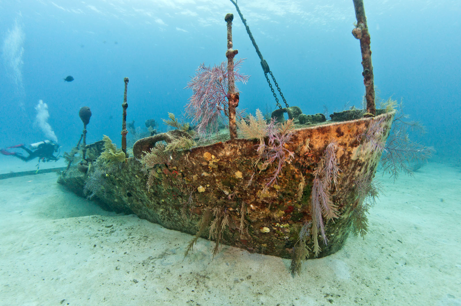 The bow section of the wreck of the Oro Verde, a 184 foot long liberty ship that was scuttled off the west coast of Grand Cayman on May 31, 1980.