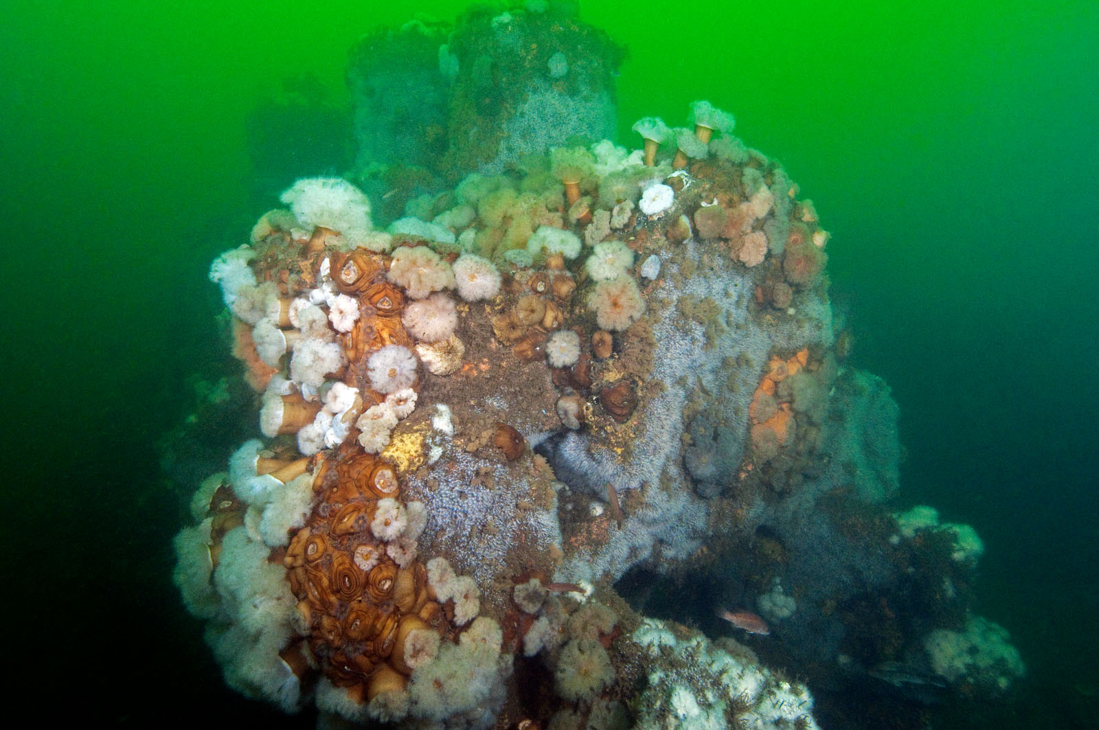 The front end of a steam locomotive - one of two that lie within twenty feet of each other at a depth of 80' feet in the Atlantic Ocean off the coast of Long Branch, New Jersey, USA. The locomotives date from the 1850's. They may have possibly been built by the Seth Wilmarth Union Works - a South Boston builder of locomotives from 1848 till 1855. The locomotives may be viewed or photographed by SCUBA divers but nothing can be removed and grappling hooks cannot be used to anchor in. The locomotives have a 2-2-2 wheel layout which was rare in the Americas.