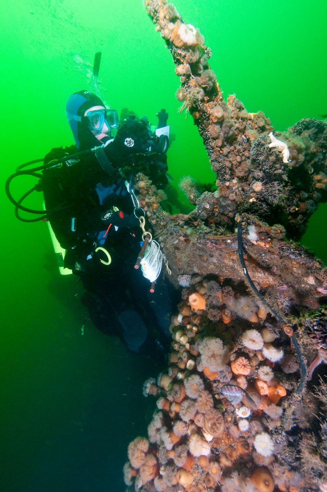 Beth Dalzell of Brick, New Jersey explores the wreckage of the Pinta, a 194' long freighter that sunk in 85' of water on Wednesday, May 8, 1963 after a collision with the freighter City of Perth. There were no casualties. The Pinta was built in the Netherlands in 1959.