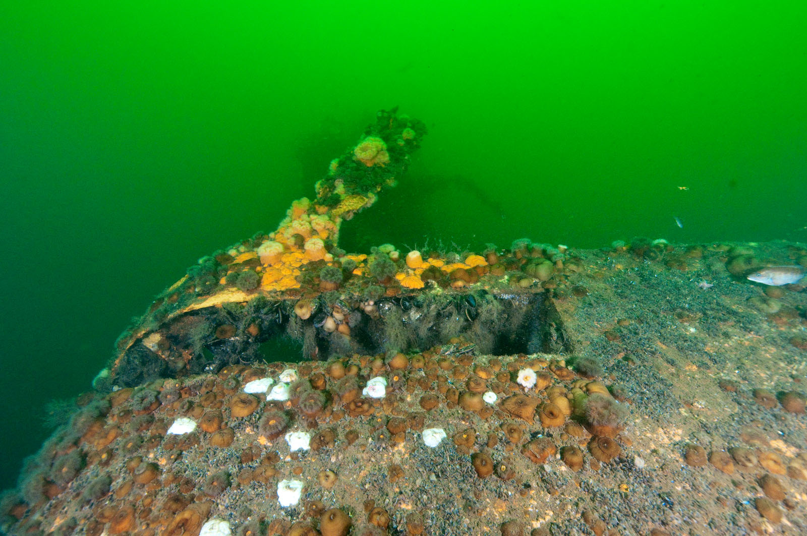 Wreckage of the Pinta, a 194' long freighter that sunk in 85' of water on Wednesday, May 8, 1963 after a collision with the freighter City of Perth. There were no casualties. The Pinta was built in the Netherlands in 1959.