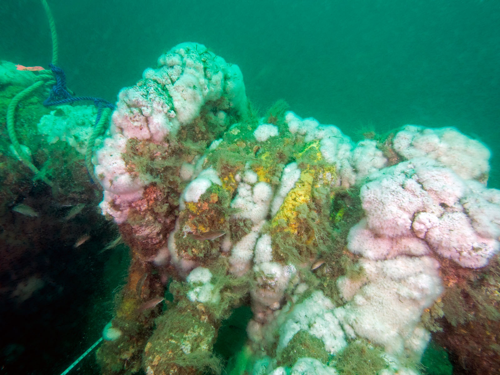 The top of the engine on the Robert J. Walker, sunk on June 21, 1860 in the Atlantic Ocean approximately ten miles off the coast of Atlantic City, New Jersey, USA. The ship collided with a commercial schooner. The ship sunk within an hour and 20 of the 66 crew members died. The RJ Walker is an iron-hulled steam paddle wheeler, 132' long and now lies in 90' of water. The photo was taken as part of the Robert J. Walker Shipwreck Mapping Project.