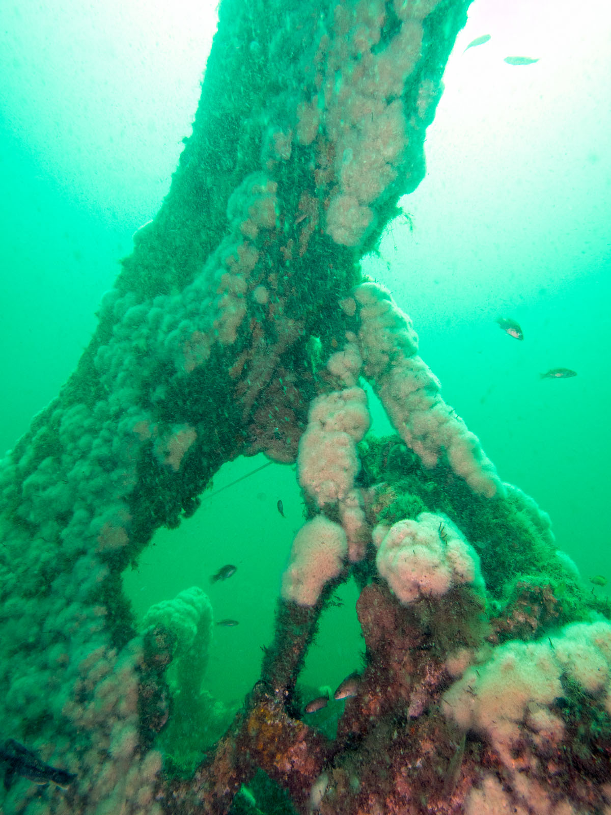 The bow of the Robert J. Walker, sunk on June 21, 1860 in the Atlantic Ocean approximately ten miles off the coast of Atlantic City, New Jersey, USA. The ship collided with a commercial schooner. The ship sunk within an hour and 20 of the 66 crew members died. The RJ Walker is an iron-hulled steam paddle wheeler, 132' long and now lies in 90' of water. The photo was taken as part of the Robert J. Walker Shipwreck Mapping Project.