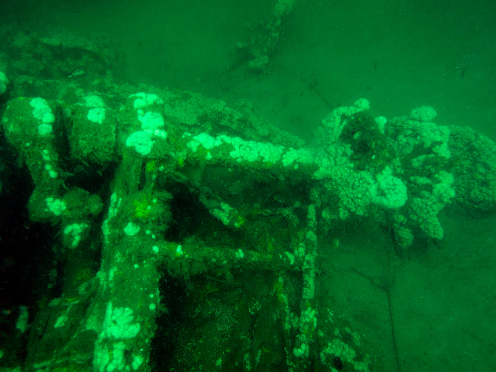 The top of the engine on the Robert J. Walker, sunk on June 21, 1860 in the Atlantic Ocean approximately ten miles off the coast of Atlantic City, New Jersey, USA. The ship collided with a commercial schooner. The ship sunk within an hour and 20 of the 66 crew members died. The RJ Walker is an iron-hulled steam paddle wheeler, 132' long and now lies in 90' of water. The photo was taken as part of the Robert J. Walker Shipwreck Mapping Project.