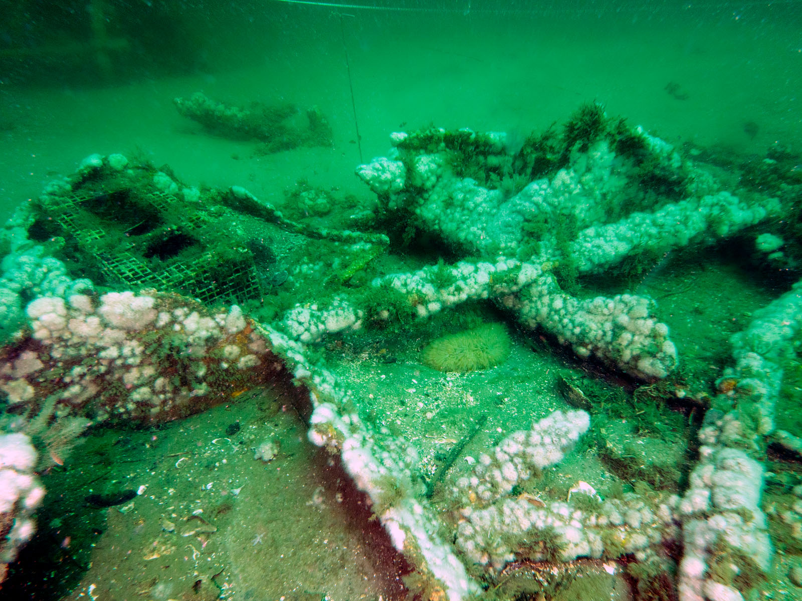 Wreckage of the Robert J. Walker, sunk on June 21, 1860 in the Atlantic Ocean approximately ten miles off the coast of Atlantic City, New Jersey, USA. The ship collided with a commercial schooner. The ship sunk within an hour and 20 of the 66 crew members died. The RJ Walker is an iron-hulled steam paddle wheeler, 132' long and now lies in 90' of water. The photo was taken as part of the Robert J. Walker Shipwreck Mapping Project.