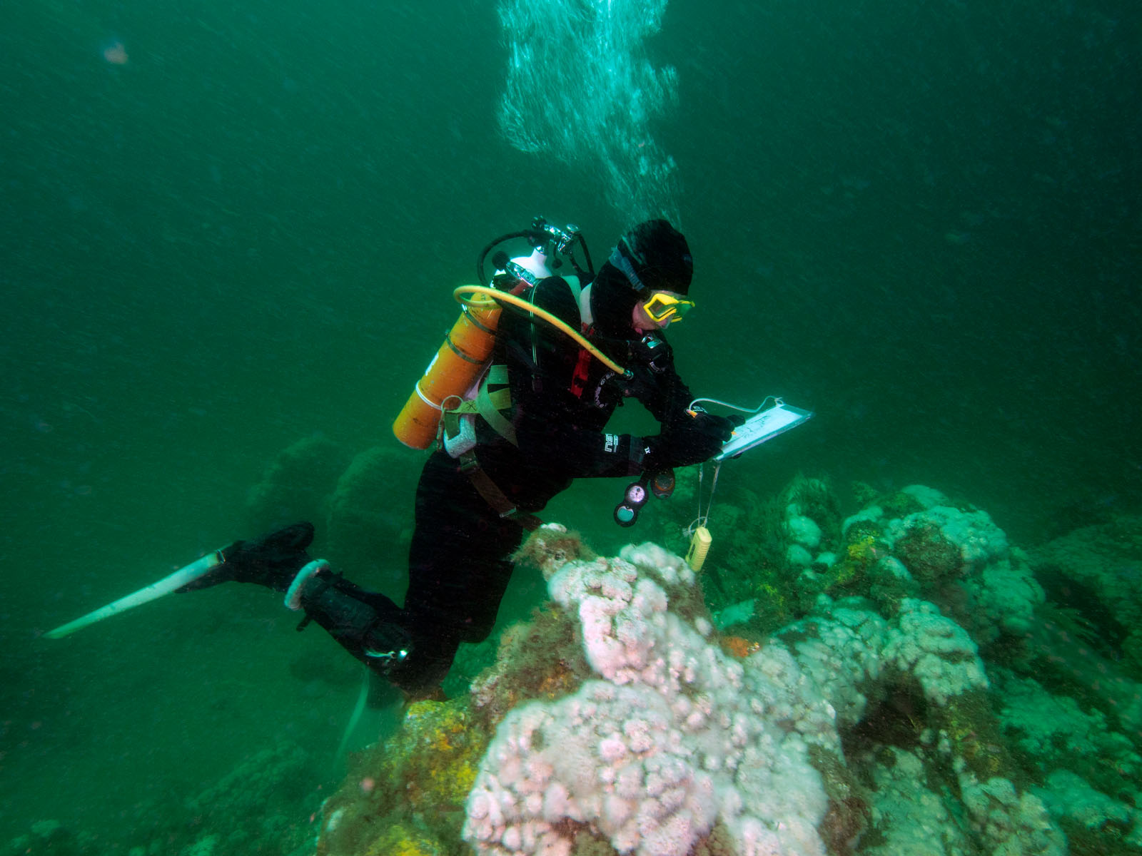 Harry Roecker maps the Robert J. Walker, sunk on June 21, 1860 in the Atlantic Ocean approximately ten miles off the coast of Atlantic City, New Jersey, USA. The ship collided with a commercial schooner. The ship sunk within an hour and 20 of the 66 crew members died. The RJ Walker is an iron-hulled steam paddle wheeler, 132' long and now lies in 90' of water. The photo was taken as part of the Robert J. Walker Shipwreck Mapping Project.