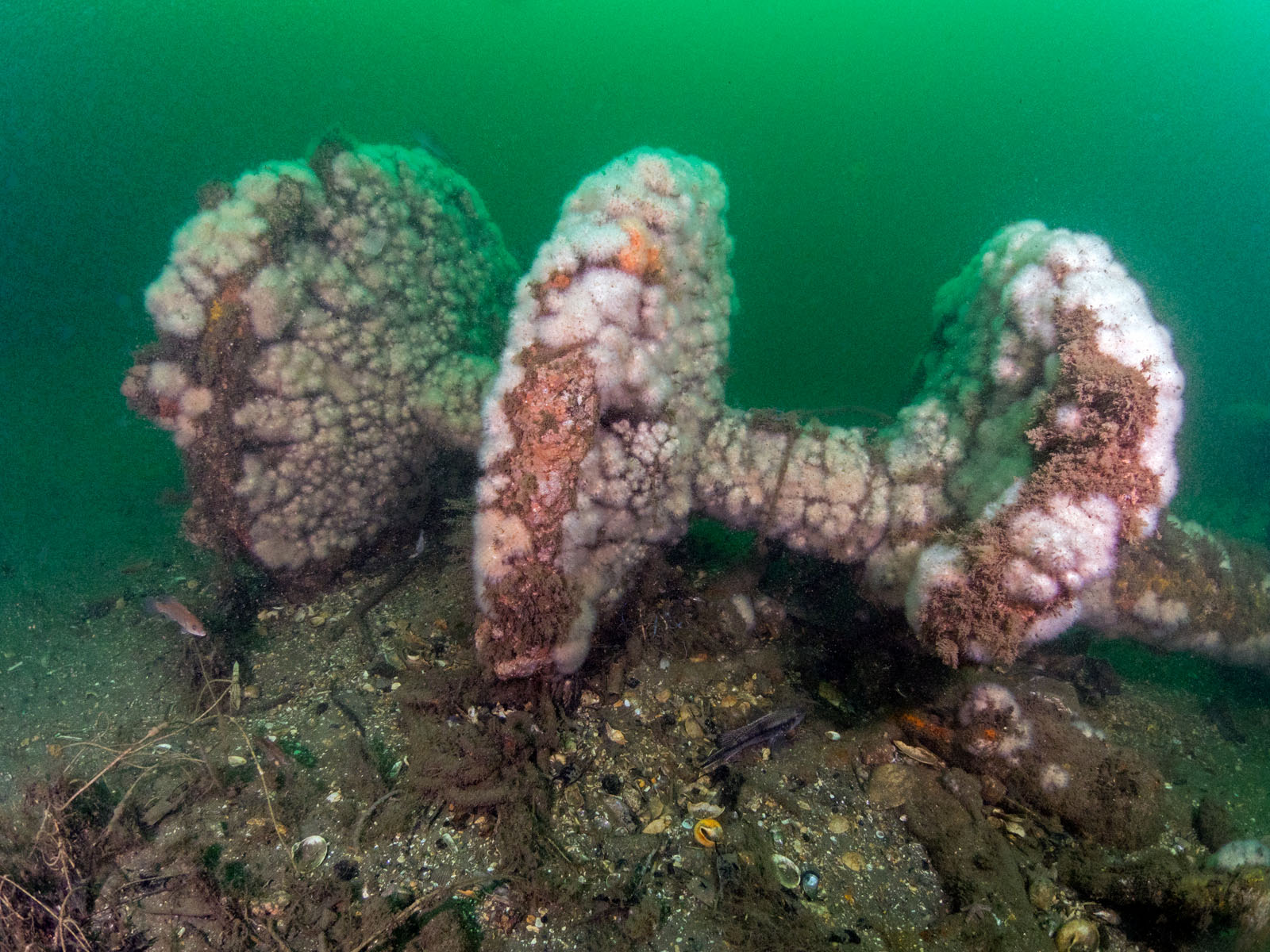 The paddle wheel (hub) on the Robert J. Walker, sunk on June 21, 1860 in the Atlantic Ocean approximately ten miles off the coast of Atlantic City, New Jersey, USA. The ship collided with a commercial schooner. The ship sunk within an hour and 20 of the 66 crew members died. The RJ Walker is an iron-hulled steam paddle wheeler, 132' long and now lies in 90' of water. The photo was taken as part of the Robert J. Walker Shipwreck Mapping Project.