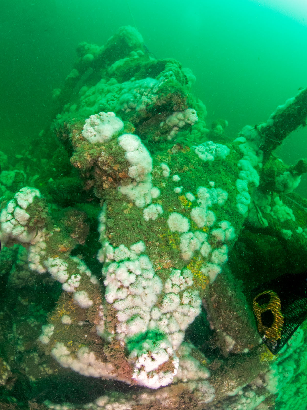Engineering spaces on the Robert J. Walker, sunk on June 21, 1860 in the Atlantic Ocean approximately ten miles off the coast of Atlantic City, New Jersey, USA. The ship collided with a commercial schooner. The ship sunk within an hour and 20 of the 66 crew members died. The RJ Walker is an iron-hulled steam paddle wheeler, 132' long and now lies in 90' of water. The photo was taken as part of the Robert J. Walker Shipwreck Mapping Project.
