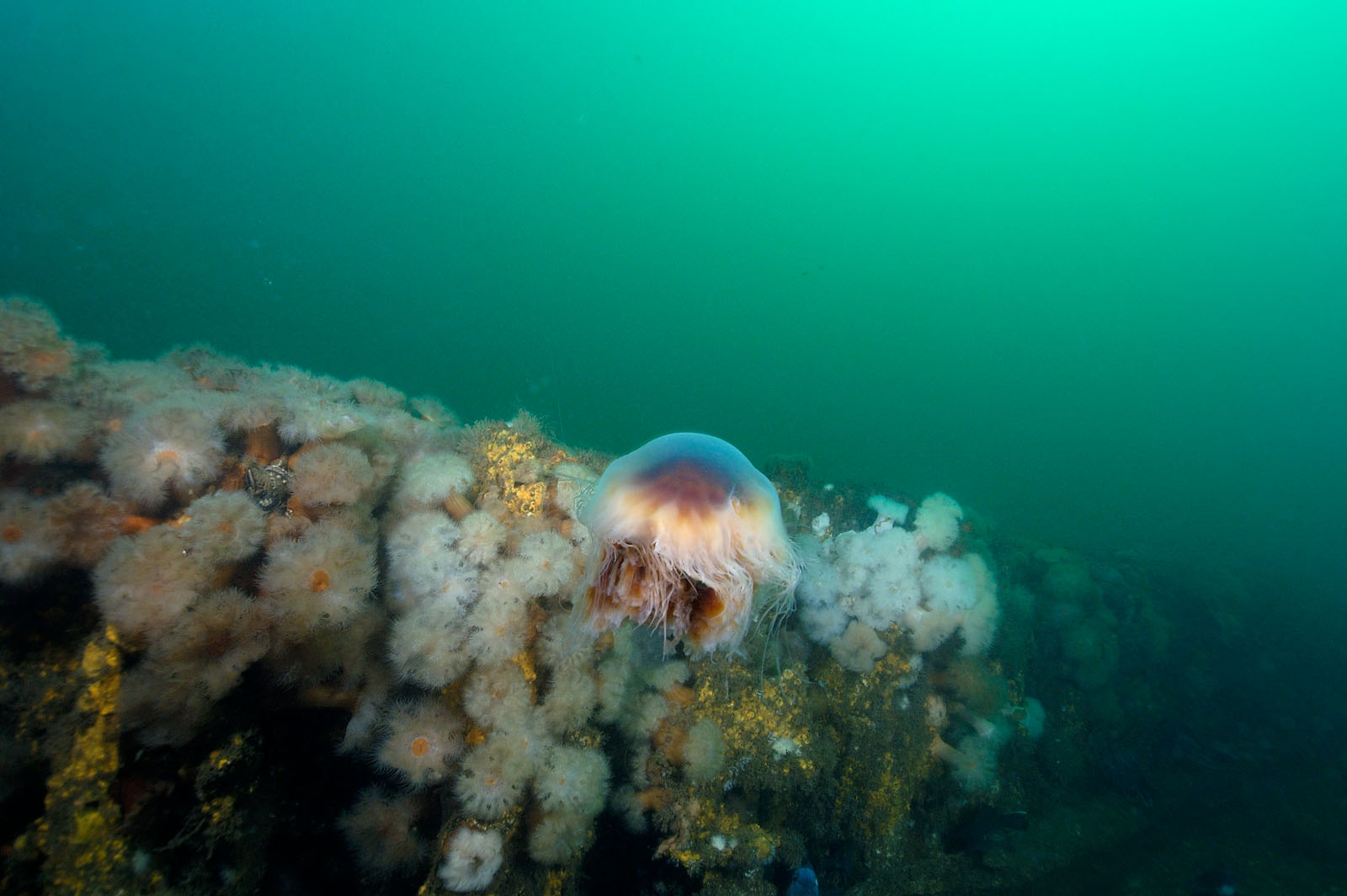 The Sea Girt Wreck, located offshore of the town of Sea Girt, New Jersey. It has not been identified. The wreckage comes off the bottom about 3'-4'. There is a large anchor, pile of anchor chain and a winch at the east end of the wreck.