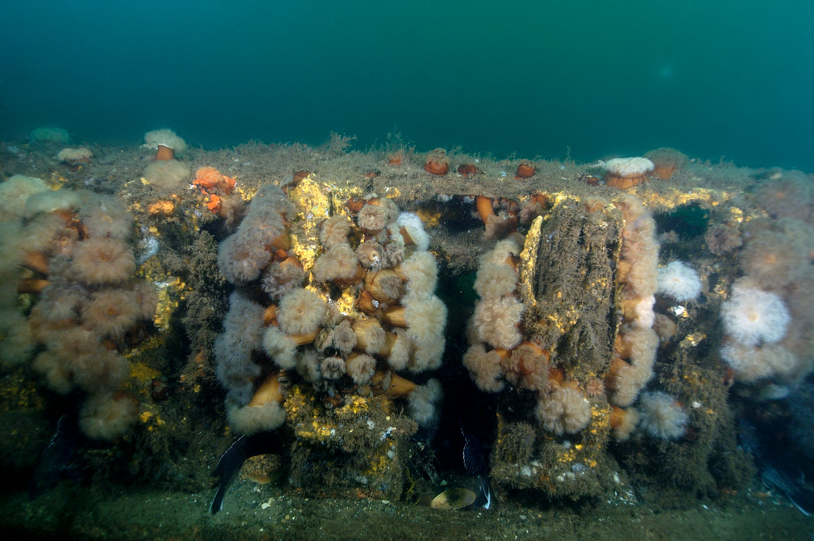 The Sea Girt Wreck, located offshore of the town of Sea Girt, New Jersey. It has not been identified. The wreckage comes off the bottom about 3'-4'. There is a large anchor, pile of anchor chain and a winch at the east end of the wreck.