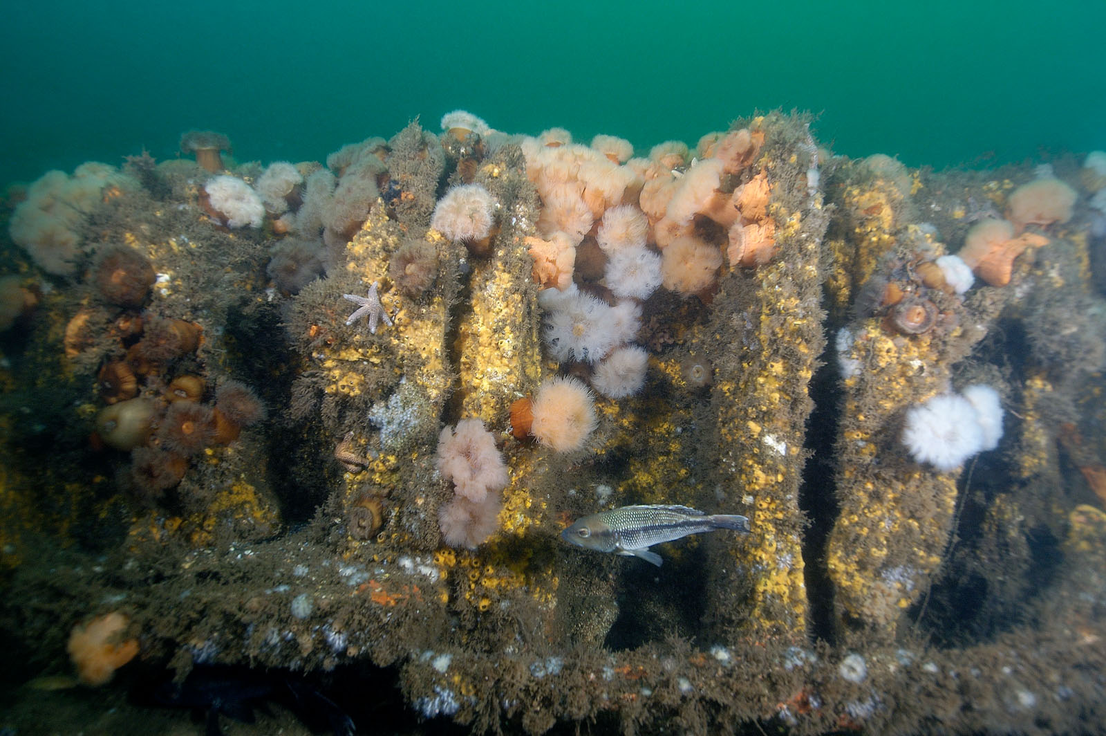 The Sea Girt Wreck, located offshore of the town of Sea Girt, New Jersey. It has not been identified. The wreckage comes off the bottom about 3'-4'. There is a large anchor, pile of anchor chain and a winch at the east end of the wreck.